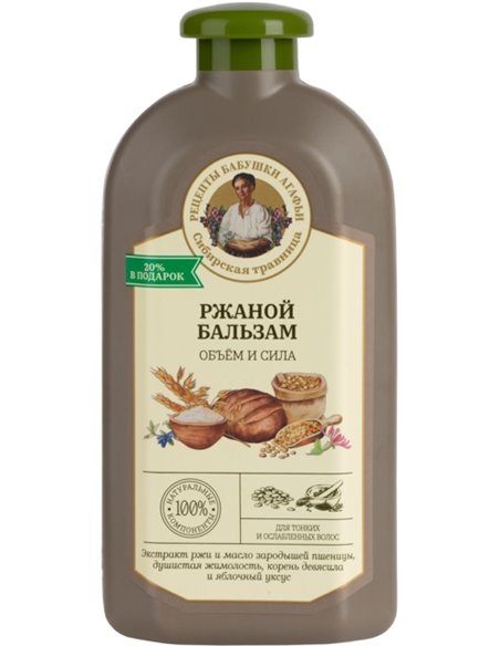 المكونات: أكوا مع دفعات من مستخلص بذور الحبوب Secale (مستخلص الجاودار) ، مستخلص الخميرة (مستخلص الخميرة) ، مستخلص زهرة Lonicera Caprifolium (مستخلص زهرة زهر العسل) ، مستخلص Inula Helenium (مستخلص الراسن) ، خل التفاح (خل التفاح) ؛ زيت جرثومة Triticum Vulgare (زيت جنين القمح) ، كحول Cetearyl ، كلوريد Cetrimonium ، Ceteareth-20 ، Guar Hydroxypropyltrimonium Chloride ، كحول البنزيل ، حمض البنزويك ، حمض السوربيك ، الجلسرين ، حامض الستريك ، عطر.