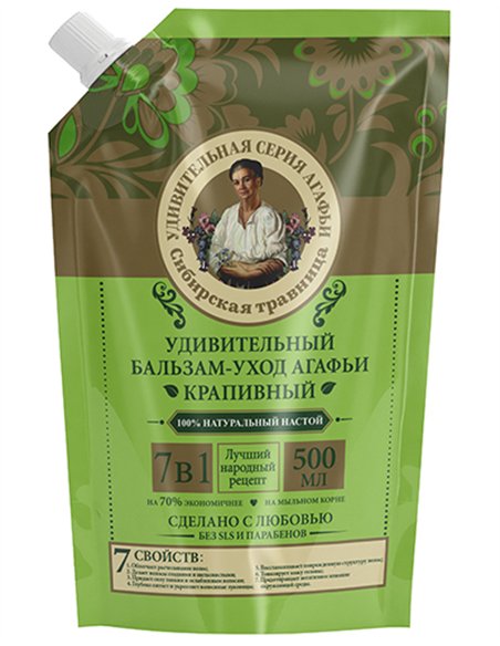 Состав: Aqua, Cetearyl Alcohol, Cetrimonium Chloride,Guar Hydroxypropyltrimonium Chloride, Urtica Urens Leaf Extract (экстракт крапивы), Urtica Urens Leaf Oil (масло крапивы), Organic Hypericum Perforatum Flower Extract (органический экстракт зверобоя),Salvia Officinalis (Sage) Leaf Extract (экстракт листьев шалфея),Alnus Glutinosa Extract (экстракт шишек черной ольхи),Methylchloroisothiazolinone, Methylisothiazolinone, Citric Acid, Parfum.