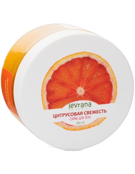 В основескрабаЦитрусовая свежесть морская соль. Увлажняющее действие оказывает масло облепихи и виноградной косточки. Скраб обладает освежающим ароматом цитруса.