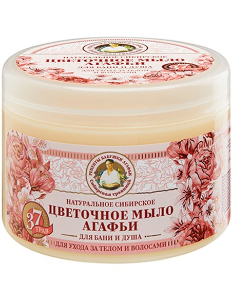 Редкие дикие растения содержат в себе феноменальное количество витаминов и полезных веществ, поэтому их экстракты незаменимы для ухода за кожей и волосами. В состав цветочного мыла, кроме множества ценных сибирских трав, входят цветочные нектары, пыльца и воск, что делает данный продукт нежным, лёгким и ароматным. Мыло для бани от Агафьи можно использовать и как шампунь, и как гель для душа. Наслаждайтесь новым цветочным мылом для бани.