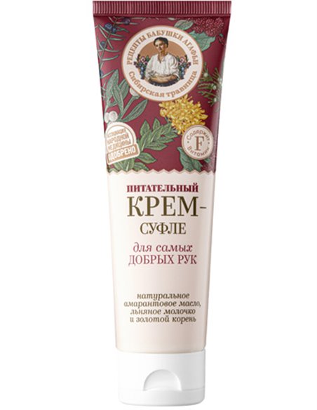 كريم سوفليه مع فيتامين F يذوب حرفيًا على الجلد، ويتم امتصاصه بسرعة، ويغذي البشرة بعمق وينعمها، ويحمي من التأثيرات الضارة للعوامل الخارجية ويعطي مظهرًا جيدًا. فيتامين F هو دهون طبيعية تعزز تجديد الخلايا وتجعل البشرة مشدودة ومرنة. يحافظ زيت القطيفة على حاجز الهيدروليبيد ويزيد من مرونة الجلد وثباته. حليب الكتان يدلل يديك بالفيتامينات والعناصر الدقيقة ويرطبها بشكل رائع ويمنحها نعومة مخملية وحنانًا. يحفز مستخلص الجذر الذهبي إنتاج الكولاجين، ويحتفظ بالرطوبة في الجلد، ويقلل من تأثير الجذور الحرة، ويحسن إمدادات الأكسجين للخلايا.