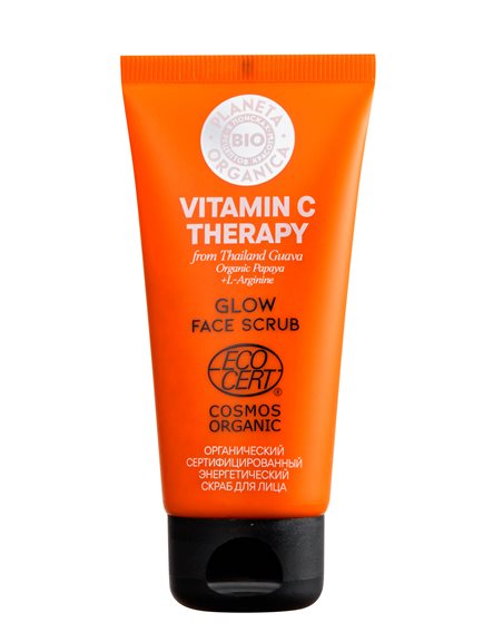 Витаминный скраб моментально заряжает энергией уставшую кожу, деликатно полирует, повышает упругость и эластичность, выравнивает тон. Кожа моментально преображается, сияет красотой и свежестью. Гуава содержит в 10 раз больше витамина С, чем апельсин. Витамин С из органического масла гуавы заряжает кожу энергией, подчеркивает и усиливает естественное здоровое сияние кожи, придает ровный тон. Органический экстракт папайи содержит натуральный энзим папаин, освобождает кожу от токсинов, обновляет и омолаживает, даря гладкость и свежесть. L-аргинин- ценная аминокислота, стимулирует обновление и омоложение кожи, восстанавливает и снимает отечность. Сертификат COSMOS ORGANIC выдан ECOCERT GREENLIFE в соответствии со стандартом COSMOS 98,7% всех компонентов натурального происхождения 13,3% всех компонентов органического происхождения не содержит вредных химических компонентов Парабенов, Силиконов, Минеральных масел, PEG, Синтетических отдушек и красителей, не тестируется на животных