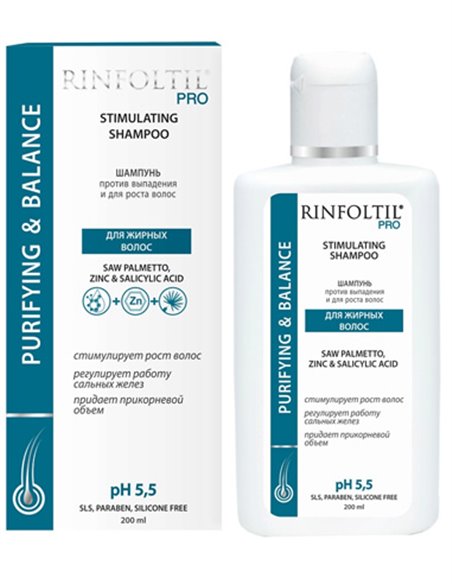Rinfoltil PRO Шампунь бессульфатный для жирных волос против выпадения и для роста волос 200мл