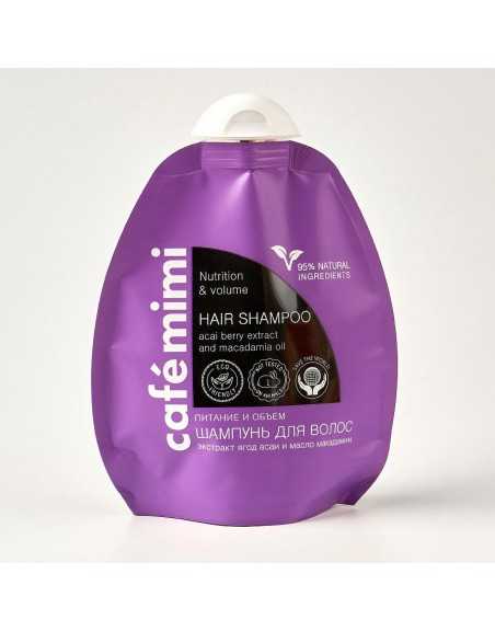 Шампунь для волос "Питание и объем" с экстрактом ягод асаи и маслом макадамии насыщает волосы жизненной силой, питает, восстанавливает и придает объем.