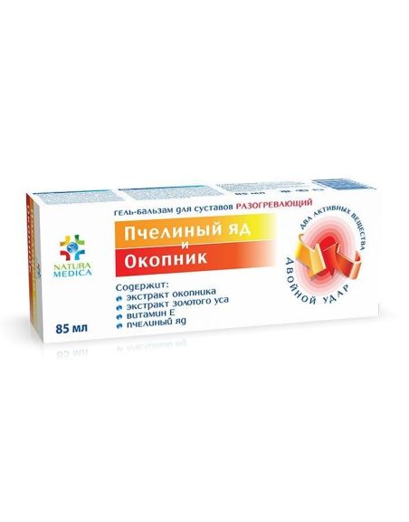 Состав: Вода, метил салицилат, экстракт окопника, триэтаноламин, изооктил стеарат, акрилаты/С 10-30 алкил акрилат кроссполимер, камфора, экстракт золотого уса, масло перца, метил никотинат, масло мускатного ореха, масло можжевельника, масло розмарина, масло эвкалипта, масло гвоздики, витамин Е, пчелиный яд (2,5мг/100г), пропиленгликоль (и) диазолидинил мочевина (и) метилпарабен (и) пропилпарабен, эвгенол, изоэвгенол, линалоол, лимонен, бензилбензоат