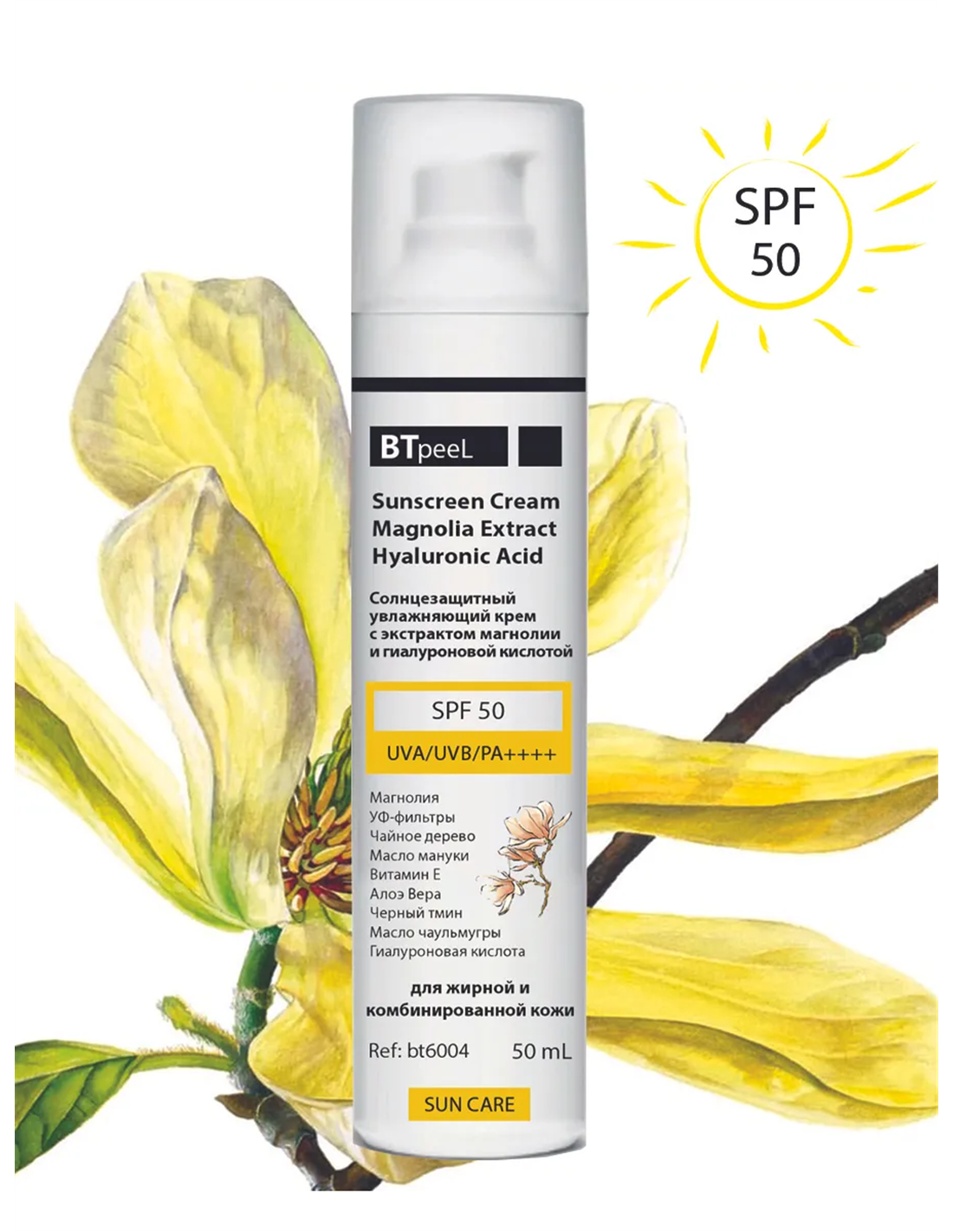 Максимальная защита кожи SPF-50 от солнечных лучей и предотвращение преждевременного старения кожи. Cолнцезащитный крем SPF-50 BTpeel содержит экстракты южных растений и сок алоэ вера, увлажняет и матирует кожу, не провоцирует закупорку пор и появления воспалительных элементов. Можно использовать как самостоятельный продукт в период высокой солнечной активности, а также в качестве постпроцедурного ухода после проведенных косметологических процедур (пилингов, контурной пластики, фотоомоложения и других). Содержит высокую концентрацию cолнечных фильтров, витамин Е и гиалуроновую кислоту. Кожа моментально увлажнена и максимально защищена от всех видов ультрафиолета (UVA/UVB/PA++++ ).