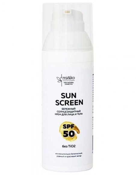 Бережный солнцезащитный крем Sun Screen SPF 50 разработан специально для чувствительной и детской кожи. В составе крема нет диоксида титана, а только природные фильтры, полезные для кожи. Натуральную защиту обеспечивает гидроксиапатит - уникальный натуральный природный UV-фильтр, который не только создаёт барьер для UVA, UVB- лучей, но и бережно ухаживает за кожей во время загара, усиливая её эластичность и предотвращая фотостарение.