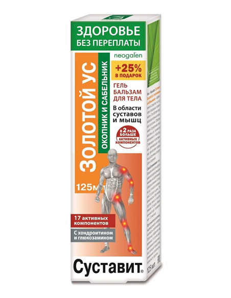 Способствует нормализации функционального состояния. Обеспечивает структурными элементами для активного обновления и гибкости. Стимулирует естественную регенерацию тканей, препятствует развитию деструктивных процессов и старению. Золотой ус – одно из самых сильных лекарственных растений, мощный биогенный стимулятор с широким спектром лечебного действия. В листьях и усах обнаружены дубильные вещества, флавоноиды, кислоты, большое содержание кальция и других микро-и макроэлементов. Используется при множестве заболеваний; особенно эффективен в качестве профилактического средства и в комплексном лечении болезней суставов и позвоночника. Обладает выраженным обезболивающим, противовоспалительным, противомикробным, антисептическим, иммунорегулирующим, восстанавливающим действием, благотворно влияет на систему кровообращения. Высокая эффективность растения принесла ему заслуженную любовь и доверие народа.Окопник (Живокост) благодаря рекордному количеству аллантоина, эффективно восстанавливает поврежденные ткани, отсюда и родовое название растения Symphytum officinale (греч.) – сращивать, соединять. Стимулирует регенерацию костей и хряща, улучшает качество синовиальной жидкости, заживляет суставные микротравмы.Сабельник болотный обладает многочисленными лечебными свойствами. При воздействии на суставы оказывает биостимулирующее, антибактериальное, обезболивающее, противовоспалительное действие, способствует выведению солевых отложений, стимулирует восстановление хрящевой ткани.