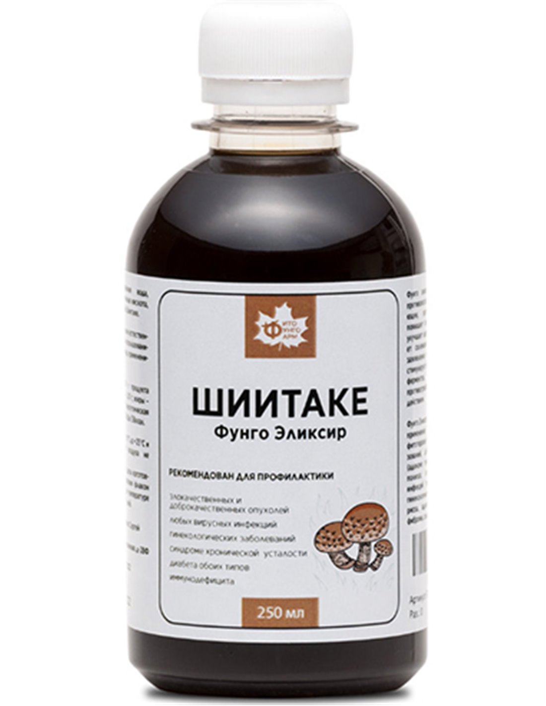 فونغو إليكسير شيتاكي (مستخلص قابل للذوبان في الماء) له تأثيرات مضادة للالتهابات، ومعدلة للمناعة، ومضادة للأورام، ويزيد من الوظيفة الجنسية لدى الرجال، ويحسن الدورة الليمفاوية، ويمنع تراكم الصفائح الدموية، ويسرع شفاء قرحة المعدة والأمعاء، ويحفز تكوين إنزيمات حرق الدهون. وله تأثير مضاد للفطريات ومضاد للفيروسات واضح.