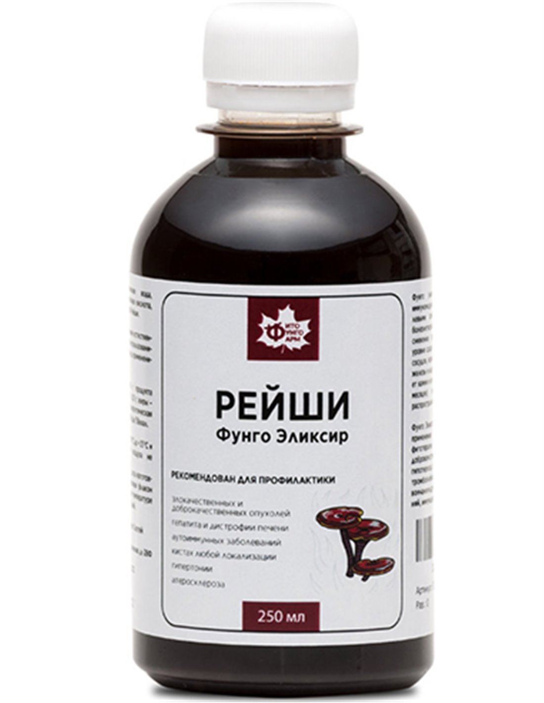 خصائص الإكسير. Fungo Elixir Reishi - له تأثير مضاد للالتهابات، ومعدل للمناعة، ومضاد للأورام، ويعيد جدران الأوعية الدموية، ويسرع إزالة النفايات والسموم من الجسم، ويخفف الدم، ويمنع تكوين جلطات الدم، ويسرع تدهور الأورام في مواقع مختلفة، مع تنشيط إنتاج الخلايا الليمفاوية.