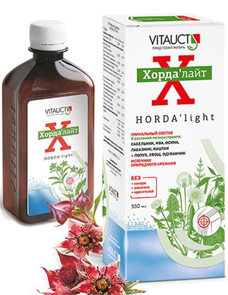 Horda'light "Vitaukt" is a herbal medicine for the treatment of diseases of the musculoskeletal system. Reduces inflammation and pain in the joints in arthritis and arthrosis, slows down the destruction of cartilage. Improves the functional state of the musculoskeletal system, reduces the risk of development and progression of osteoarthritis. The components enhance the effect of anti-inflammatory drugs. Do not irritate the mucous membrane of the gastrointestinal tract.