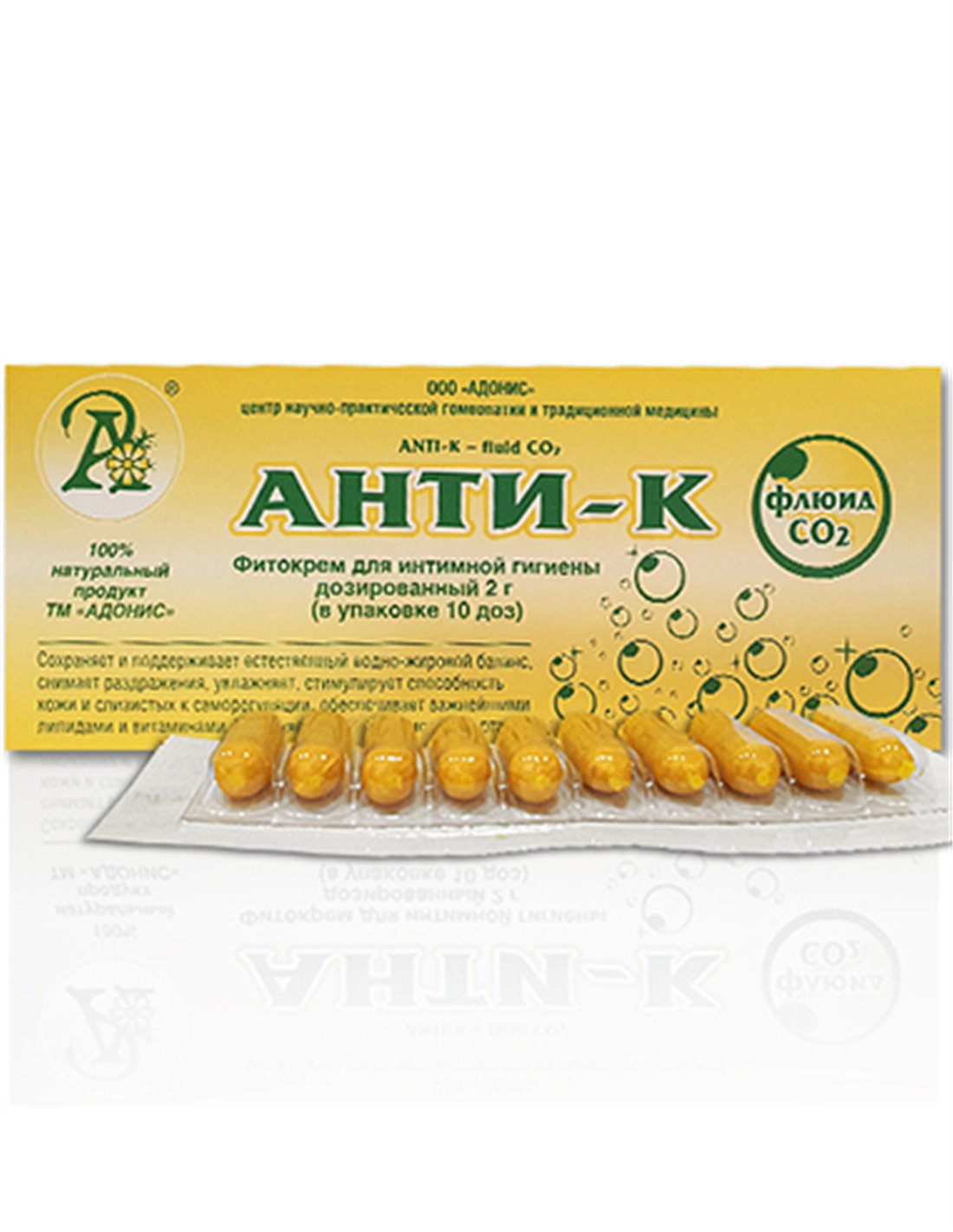 Anti-K-fluid CO2 suppositories are a homeopathic preparation obtained by deep extraction of plant materials with liquefied carbon dioxide. Innovative technology allows to isolate the most difficult to access bioactive substances from plants. Therefore, short-term use of Anti-K-fluid CO2 suppositories replaces long-term treatment with various herbs.