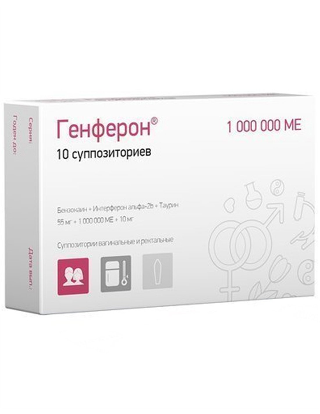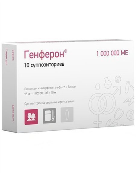 Each suppository contains 1000000 IU of interferon alpha-26, 55 mg of benzocaine, and 10 mg of taurine.