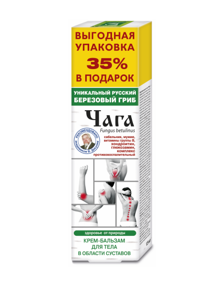 Эффективное натуральное средство на основе березового гриба, комплекса экстрактов лекарственных растений, хондроитина, глюкозамина и витаминов группы В. Улучшает кровоснабжение и метаболизм, стимулирует естественное восстановление, способствует замедлению процессов старения суставов. Преимущества крема бальзама для тела обеспечивает комплексное воздействие, безопасность. Не вызывает негативных побочных эффектов даже при длительном применении.