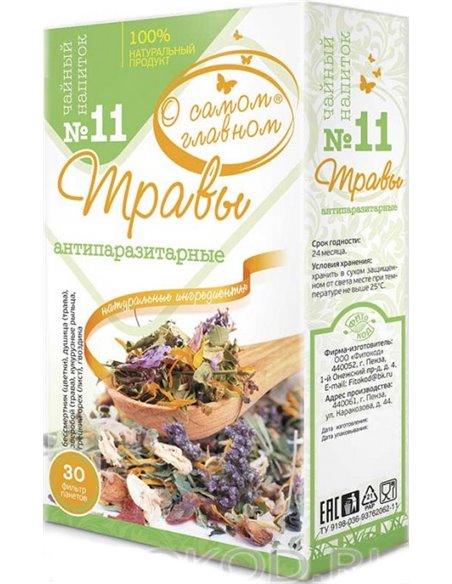 Ingredients: green tea, immortelle (flowers), oregano (grass), St. John's wort (grass), corn silk, walnut (leaf), cloves, bran (wheat).