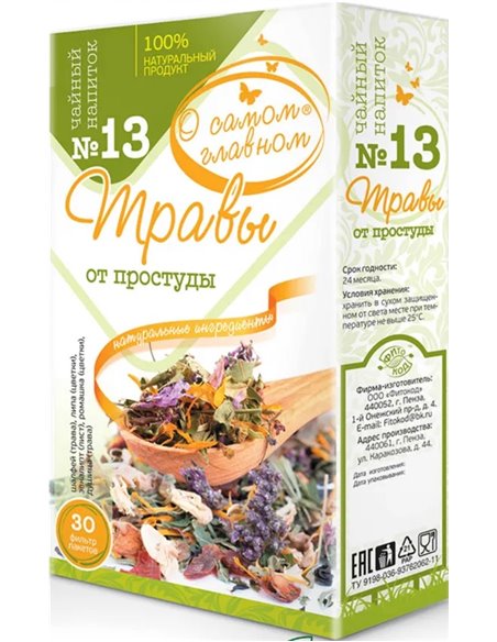 Ingredients: green tea, sage (grass), linden (flowers), eucalyptus (leaf), chamomile (flowers), oregano (grass).
