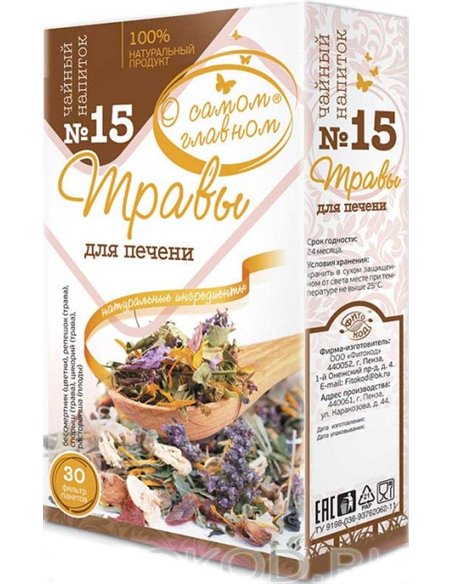 Ingredients: green tea, immortelle (flowers), turnip (grass), knotweed (grass), chicory (grass), milk thistle (fruit), wheat bran.