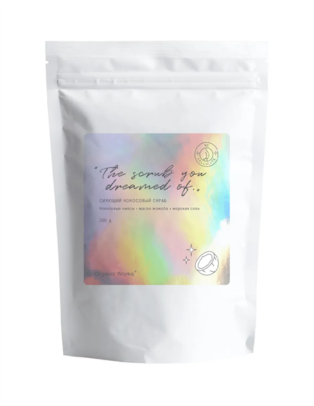 Smooth, lifted skin and a heady scent add magic to your skincare routine with Organic Works Radiant Coconut Scrub. Why do you fall in love with him at first sight? "Edible" composition. The Organic Works Scrub is free of synthetic fragrances, silicones, dyes and artificial preservatives. Aroma! How our coconut scrub smells... As soon as you open it, you will find yourself on a heavenly exotic island. Can you hear the sound of the surf already? All the best at once. Premium Ingredients: A blend of 4 luxurious organic oils, coconut chips, ground apricot kernels, vitamin E, highlighter, organic sugar, sea salt. High concentration of the main active ingredient. If in a regular scrub the scrubbing particles are "drowned" in the basic components, then in the Organic Works scrub the whole mass is working, effective elements. Therefore, the consumption is more economical. Do you want to feel it on your skin? Instead of a thousand words - just try it!