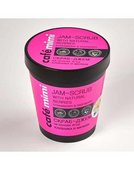 INCI: Sucrose (Sugar), Vegetable Glycerin (from vegetable oils), Propylene Glycol, Prunus Amygdalus Dulcis (Sweet Almond) Oil (Almond oil), Glycine Soja (Soybean) Oil (Soybean oil), Fragaria Vesca (Strawberry) Fruit Powder ( strawberries), Rubus Idaeus (Rasberry) Seed Powder (Raspberry seeds), Polysorbat-20, Perfume, Polyacrylamide, C13-14 Isoparaffin, Laureth-7, Xanthan Gum, Benzyl Alcohol, Caprylyl Glycol, Tocopheryl Acetate (vitamin E), CI 75470, CI 77510Massage the scrub jam onto damp skin. Wash off with warm water.