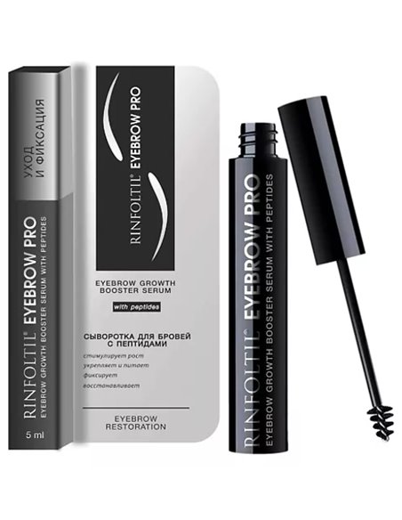 Peptide serum gel for eyebrow growth RINFOLTIL® EYEBROW PRO strengthens and nourishes, fixes, restores. As part of the eyebrow growth product - peptides (Myristoyl Pentapeptide-17, Biotinoyl Tripeptide), Shea butter, keratin, green tea extract, ginkgo biloba extract, ginseng extract, inositol, D-panthenol, arginine, allantoin, collagen, hyaluronic acid, vitamin E, biotin. The liposomal form ensures the delivery of active ingredients directly to the hair follicles.