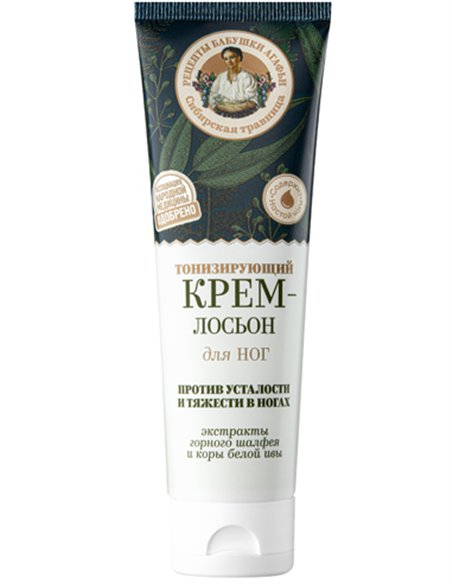 Cream-lotion for feet with chaga infusion helps relieve the feeling of fatigue in the legs, gives ease of movement and a feeling of comfort. The chaga infusion contains oxalic, acetic and formic acids, which eliminate pain, as well as zinc and tannins, due to which it has an antibacterial and antiseptic effect. Mountain sage extract stimulates cell restoration, gives the skin smoothness and tenderness, refreshes for a long time and gives a pleasant aroma. White willow bark extract has a tonic and protective effect on the skin.
