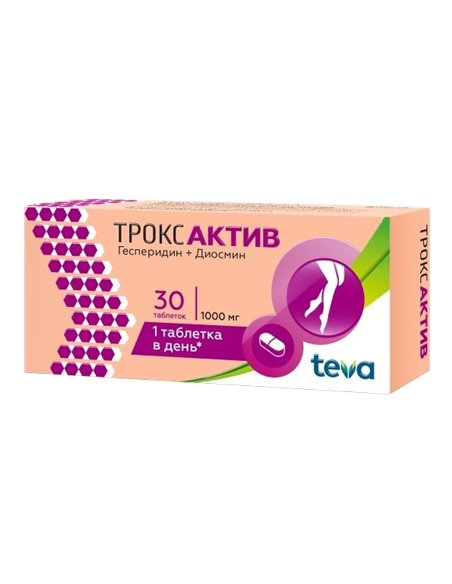 Troxactiv is a purified micronized flavonoid fraction consisting of diosmin and other flavonoids in terms of hesperidin. This combination has venotonic and angioprotective properties. Reduces vein extensibility and venous stasis, in microcirculation - reduces capillary permeability and increases their resistance, improves venous hemodynamics.