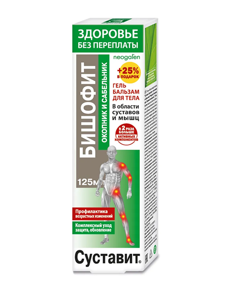 эффективное средство на основе природных компонентов. Способствует нормализации функционального состояния. Обеспечивает структурными элементами для активного обновления и гибкости. Стимулирует естественную регенерацию тканей, препятствует развитию деструктивных процессов и старению. Действие и эффективность геля бальзама для тела обеспечены высокой биологической активностью его натуральных компонентов, обладающих выраженным положительным комплексным действием. Бишофит (Bishofitj природный полиминерал, образовавшийся более двухсот миллионов лет назад на глубине 12,5 км при испарении древних морей. Содержит около 70элементов, в том числе, хлорид магния (главное действующее вещество),а также йод, бром, железо, кремний, цинк. Широко применяется в медицине при заболеваниях суставов, оказывает выраженное противовоспалительное, болеутоляющее и регенерирующее действие, активизирует обменные процессы. Клинические исследования подтвердили эффективность бишофита при хронических воспалительных и дистрофических заболеваниях опорно двигательного и нервно мышечного аппарата: деформирующих артрозах, ревматоидном артрите, люмбалгии, люмбоишиалгии и других заболеваниях. Сабельник болотный (Сотагитpalustre) лекарственное растение с выраженным биостимулирующим, противовоспалительным, антибактериальным, обезболивающим, солевыводящим, против ревматическим и регенерирующим действием. Обладает многочисленными лечебными свойствами. Признанное народное средство для борьбы с ревматизмом, радикулитом, артритами и артрозами, отложением солей в суставах рук и ног. Способствует снятию воспаления, отечности, оказывает положительное влияние при нарушениях подвижности суставов и позвоночника. Окопник (живокост, Symphytum) одно из самых популярных в народной медицине лекарственных растений, применяется в лечебной практике около 2 тысяч лет. Стимулирует регенерацию костной и хрящевой ткани при заболеваниях суставов, улучшает качество синовиальной жидкости, заживляет суставные микротравмы, ускоряет сращивание костей при переломах. Корни содержат большое количество биоактивных веществ. Аллантоин, главное действующее вещество окопника, включён в список местных анестетиков, вяжущих и противовоспалительных препаратов Всемирной Организации Здравоохранения. Можжевельник (Juniperus) обладает антисептическим, регенерирующим, болеутоляющим, противовоспалительным, против отёчным действием. Широко применяется в медицине при лечении ревматизма, артрита, остеохондроза, подагры, нарушениях микроциркуляции. Ментол (Mentholum) основной компонент масла мяты перечной. Оказывает местное сосудосуживающее действие, понижая чувствительность нервных окончаний, вызывая ощущения прохлады и облегчая боль. Обладает местным обезболивающим, успокаивающим, выраженным бактерицидным и противовоспалительным действием. Камфора (Camphora) средство растительного происхождения, добывается из листьев и древесины камфорного дерева, произрастающего в Индии и Китае. При наружном применении в области суставов оказывает антисептическое, согревающее, анальгезирующее и противовоспалительное действие, расширяет кровеносные сосуды и улучшает трофику околосуставных тканей.