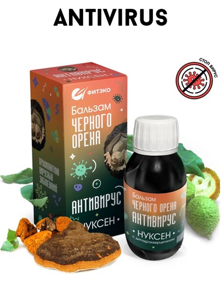 Ingredients: leaf, black walnut pericarp, fire moth (PZHVM), comb lion's mane, chaga, black garlic, turmeric, black cumin, ginger, pine pollen; dihydroquercetin (Dahurian larch extract), purified water, residual alcohol up to 0.5%.