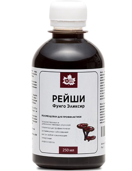 APPLICATION. Fungo Elixir Reishi is recommended for use for the prevention and herbal medicine of malignant (especially lung oncology) and benign neoplasms (prostate adenoma); with hepatitis and fatty liver, decreased thyroid function and cystic changes in it. Reishi is also effective for cysts of the liver, kidneys, mammary glands, systemic lupus erythematosus and other autoimmune diseases, obliterating endarteritis, thrombophlebitis, and various immunodeficiencies.