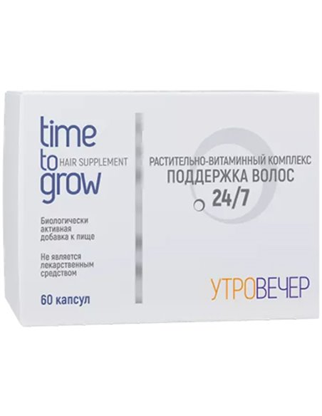 The Time to Grow "24/7 Hair Support" complex was developed by dermatologists specializing in trichology and with many years of practice. The development took into account the main negative effects that most often affect hair in practice. This is a lack of basic macro and micronutrients (protein, vitamins, microelements), emotional stress, oxidative stress, sleep disorders, nutritional errors and functional digestive disorders, the effect of dihydrotestosterone on hair, impaired microcirculation and cell respiration, inflammatory processes. The product is designed for multifactorial complex support and is aimed at improving the quality of everyday life, because the condition of the hair is a reflection of the general condition of the body. Contains physiological, but fairly high doses of ingredients working in synergy, which allows you to get away from high doses and avoid polypharmacy (prescribing a large number of different dietary supplements). The complex is designed to affect a very common condition of "pre-disease", when the functional state of the body is impaired for a long time (lack of energy, anxiety, difficulty falling asleep, swelling, digestive complaints), but the tests are normal and the disease has not been diagnosed. The body needs help, but drug therapy is not indicated, especially since many drugs have side effects (especially with long-term use) and should be used only as indicated. In case of long-term functional disorders, the complex is recommended for use for 3 months, with subsequent possible repeated doses throughout the year.