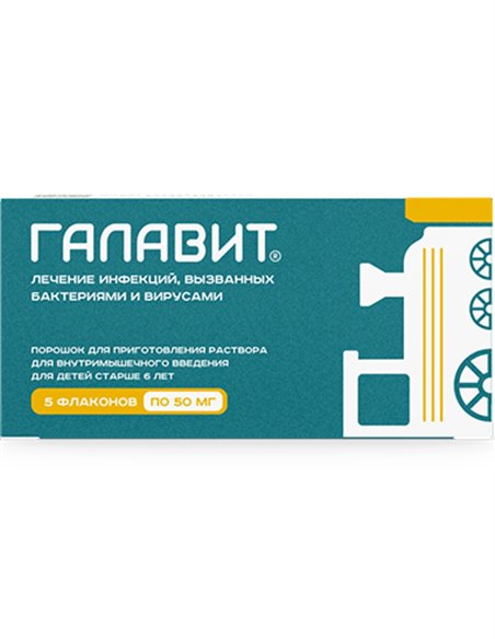 - for purulent surgical diseases (burn lesions, recurrent furunculosis, chronic osteomyelitis, gangrenous appendicitis with omentitis, peritonitis, purulent pleurisy): children from 6 to 11 years old, one injection of 50 mg daily - 5 days, then one injection of 50 mg every other day within 10 - 15 days. Course 10-15 injections; children aged 12-18 years - treatment is carried out according to the same scheme in the form of intramuscular injections of 100 mg. When dressings, it is desirable to use the drug Galavit externally in the form of dressings with sterile wipes moistened with a 1% solution of the drug in water for injection (in dressings with mash or water-soluble ointment dressings).