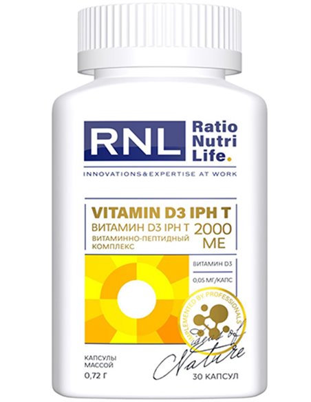 RNL Vitamin D3 2000 IU with thymus peptide helps to strengthen immunity at the humoral and cellular level, protecting the body during exacerbation of viral infections, acute respiratory diseases, flu, during pandemics, with weakened immunity, regulates the body's metabolic processes, and also has a preventive effect on joint diseases, accelerates the regeneration of bone tissue and ligaments.