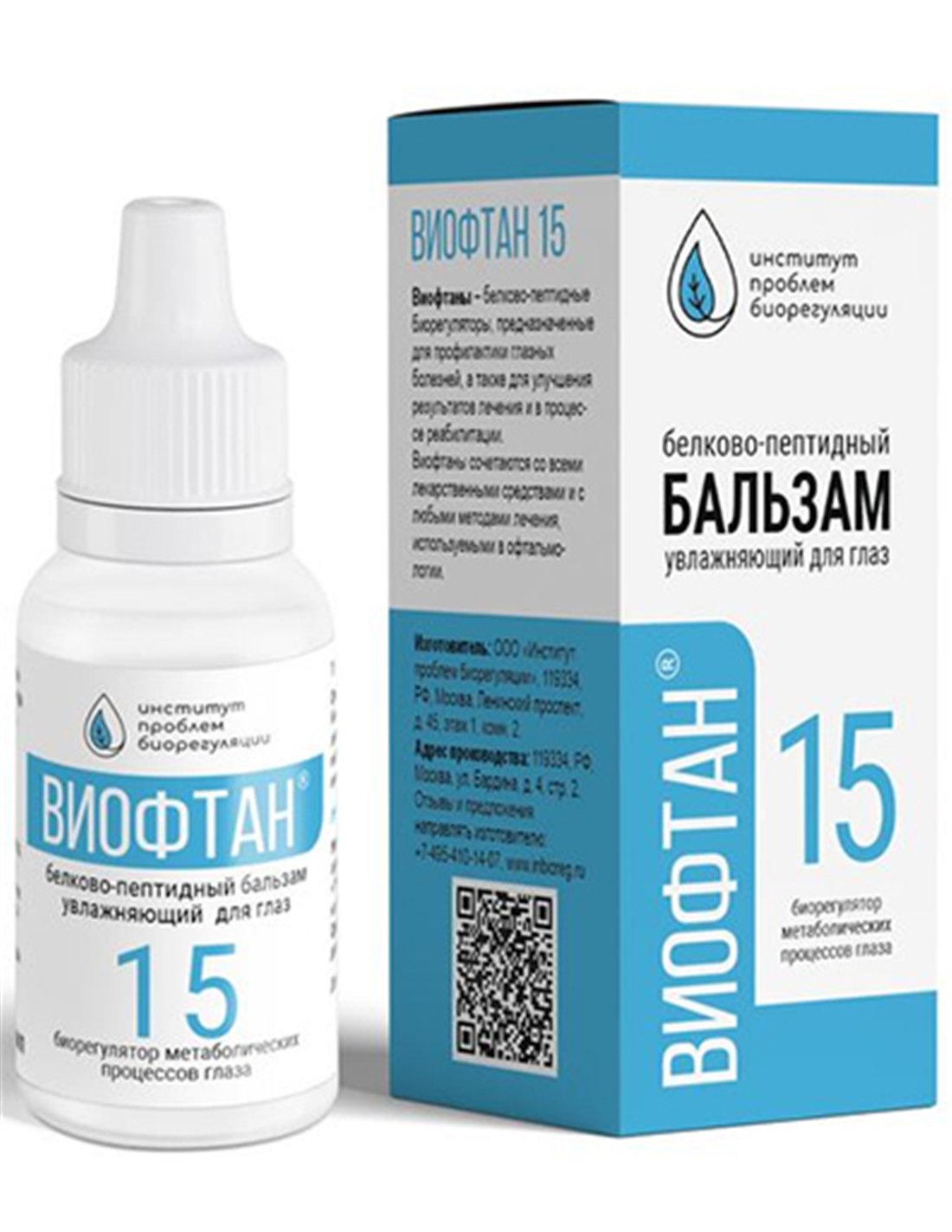 "Vioftan 15" is instilled into the eyes, 1-2 drops, 2-7 times daily, depending on the condition. Different products in the "Vioftan" line are instilled into the eyes at intervals of at least 5 minutes. Duration: Courses of at least 1 month, continuous use if necessary.