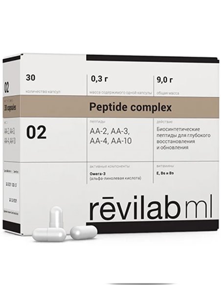 Revilab ML 02 has an anti-stress, immunostimulating and antioxidant effect, its high biological activity stimulates the restoration of liver tissue, this becomes possible due to the activation of the synthesis of tissue-specific proteins. Certain components of the drug improve the transport of oxygen to tissues, remove toxins and harmful chemicals from the body, and fight free radicals.