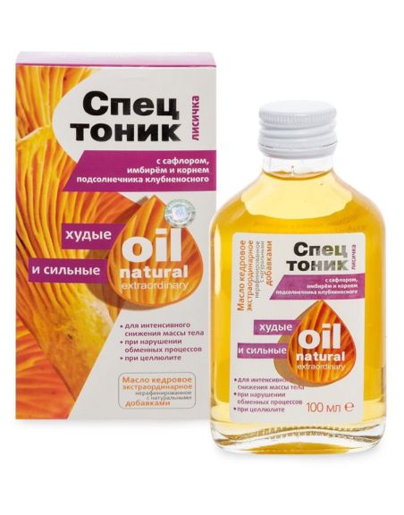 Special Tonic Chanterelle with safflower, ginger, and Jerusalem artichoke is the extraordinary special oil extracted from the Siberian cedar kernels and the chanterelle fruiting body, supplemented with the native natural concentrates, with beneficial effect in the following situations: