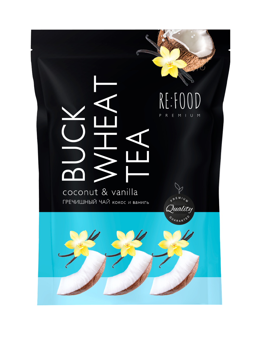 Buckwheat tea "Coconut and Vanilla" is an incredible combination of delicate, creamy aroma of coconut and sweet vanilla notes, which, together with the unobtrusive taste of the original tea, give an enveloping, soft taste of coconut-vanilla biscuit! Ku Qiao buckwheat tea is made from Tatar black buckwheat seeds. Ku Qiao tea drink contains many useful substances - vitamins A, E, B, iodine, calcium, silicon, iron, zinc, potassium, magnesium, etc. Regular consumption of buckwheat tea is good for the body: tea prevents blood clots, strengthens the immune system, removes toxins , toxins and excess salt from the body, relieves fatigue, normalizes the digestive tract and sugar levels. Buckwheat tea, in addition to the detox effect, also has a relaxing effect, and therefore it is recommended not only for weight loss, but also in stressful or depressive states.