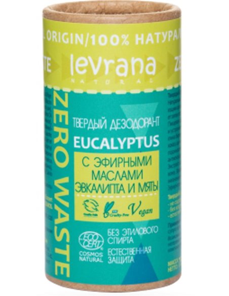 Натуральный твердый дезодорант с терпким и освежающим ароматом эвкалипта эффективно нейтрализует запах пота, не блокируя при этом потовые железы.