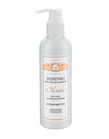 Gentle milk with almond oil, calendula oil and oat proteins for daily make-up removal from the surface of the skin. Gently and effectively cleanses the skin, softens it, maintains its natural moisture level. Has a light texture. Due to its mild formula and physiological pH value, it is suitable for cleansing the delicate skin around the eyes.
