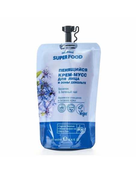 3. Increases skin tone and elasticityCream-mousses for the face and décolleté of the SUPER FOOD series with a delicate melting texture based on cornflower and rose hydrolates delicately cleanse the skin of the face, deeply moisturize and soften, prevent the feeling of dryness and tightness. Extracts of Oregano and Green Tea, Flax and Grape Seed Oil increase skin tone and elasticity, keeping it soft and comfortable for a long time. Washing gel based on Bamboo Charcoal, deeply cleanses pores, has a detoxifying effect. Lavender and Sage extracts normalize the secretion of the sebaceous glands, preventing the appearance of blackheads. The skin becomes smooth, clean, without oily sheen.SUPER FOOD - foods high in vitamins and minerals, natural plant extracts and oils, essential for the health and beauty of your skin.• Specially developed recipes using superfoods - unique