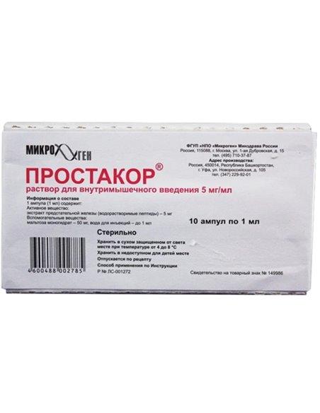 active substance: prostate gland extract (water-soluble peptides) 5 mg;