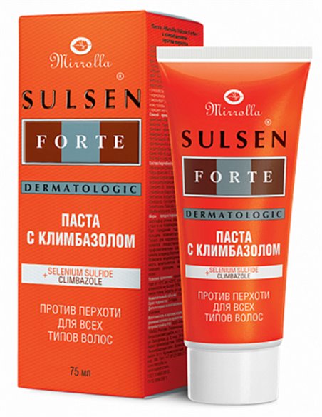 wash your hair with Mirrolla Sulsen Forte shampoo with climbazole. Carefully rub the paste with massage movements into the hair roots. Leave on hair for 5-10 minutes, rinse with warm water. Use every other day for 4-6 weeks, after which switch to regular use of Mirrolla Sulsen Mite paste for another 1.5-2 months. Repeat the course as necessary.