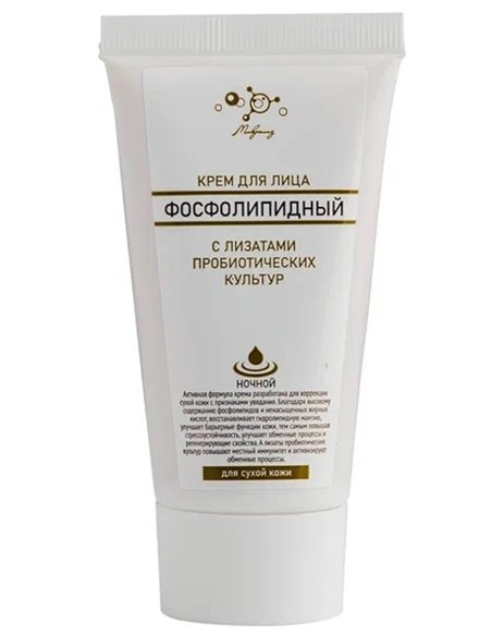 The active formula of the cream is designed to correct dry skin with signs of aging. Due to the high content of phospholipids and unsaturated fatty acids, the cream restores the hydrolipidic mantle, improves the barrier functions of the skin, thereby increasing stress resistance, improves metabolic processes and regenerating properties. And lysates of probiotic cultures increase local immunity and activate metabolic processes.