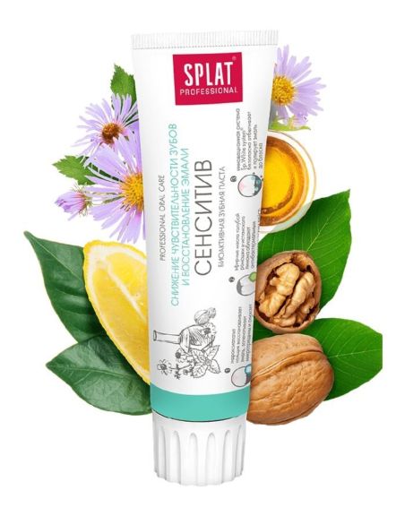 Camomile and lemon essential oils have a soothing effect on gums. PVP effectively breaks up plaque and prevents its further development. Sp.White System gently whitens and polishes tooth enamel to a brilliant shine.