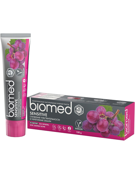 Recovering toothpaste BIOMED® Sensitive with calcium hydroxyapatite for enamel strengthening and eliminating the causes of tooth sensitivity. Now your teeth have nothing to be afraid of!