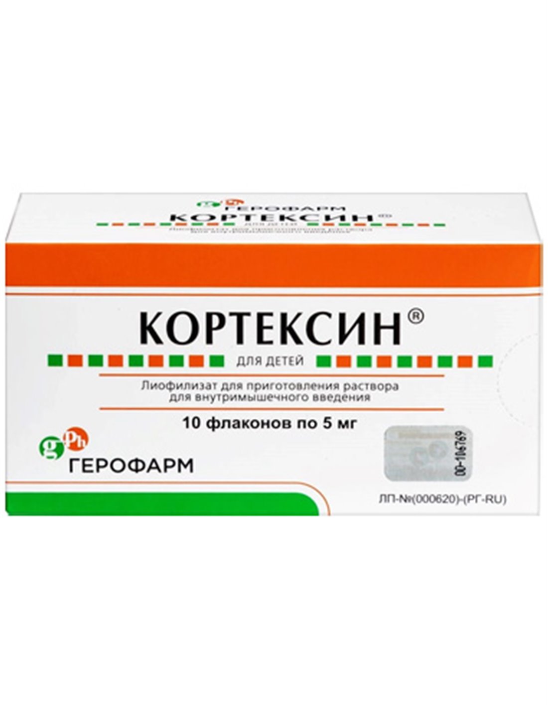 CORTEXIN contains a complex of low molecular weight water-soluble polypeptide fractions that penetrate the blood-brain barrier directly to nerve cells. The drug has a nootropic, neuroprotective, antioxidant and tissue-specific action. Nootropic - improves higher brain functions, learning and memory processes, concentration, stability under various stressful conditions.