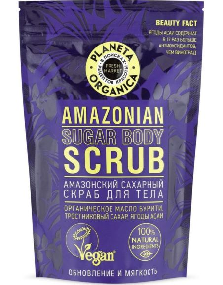 Amazon Sugar Body Scrub cleanses and tones the skin by energizing ripe berries from the shores of the Amazon.