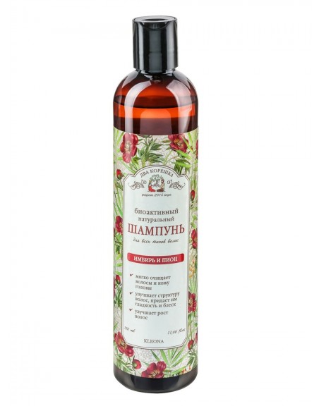 Action: gently and effectively cleanses the hair and scalp. Provides moisture, volume, strength and elasticity to hair. Gives hair a well-groomed appearance, smoothness and healthy shine. It has a tonic effect on the hair roots. Ginger extract improves microcirculation and metabolic processes in the cells of the scalp, stimulates hair follicles, improves hair growth, reduces hair loss. Peony root extract fills and strengthens the hair structure, improves their quality and appearance. The shampoo is suitable for daily use. Regular use contributes to the growth of healthy and strong hair.