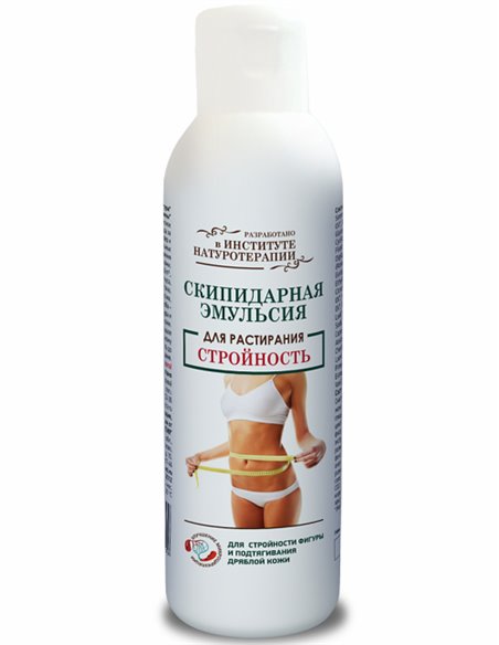 Turpentine emulsion "Stroynost" is designed to ensure that the use of turpentine baths occurs with maximum efficiency. It directs all the strength and power of the stimulating action of the baths precisely to areas with an increased amount of fat, treated with an activator.