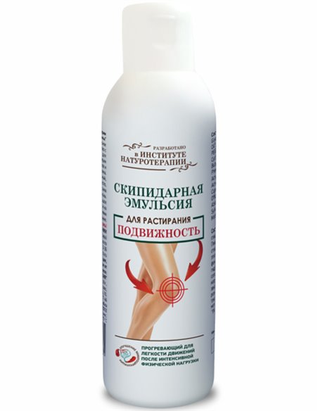 Turpentine emulsion "Mobility" provides regeneration of cartilage and joints, relieves pain, reduces stiffness of movements.