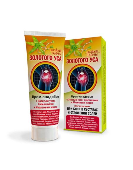 The cream is recommended for removing pain in muscles and joints when salt is deposited, normalizes joint mobility. Extracts of medicinal plants that make up the “Cream drug” (extracts of golden mustache, saber, nettle, horse chestnut, St. John's wort, etc.) are very rich in flavonoids, vitamin C and tannins. It is these biologically active components that determine the anti-inflammatory, bactericidal, analgesic, antiallergic and antipyretic properties of “Cream-DOSE PAIN IN THE JOINTS AND SEDIMENTS DEPOSITION”, and effectively contribute to the improvement of blood circulation in the arteries and vessels of the articular capsule, the bones and nearby arteries and the deposition of SALTS, and effectively contribute to the improvement of blood circulation in the arteries and vessels of the articular capsule, the bones and nearby arteries and the deposition of SALTS, and effectively contribute to the improvement of blood circulation in the arteries and vessels of the articular capsule, the bones and nearby arteries and the deposition of SALTS. process.